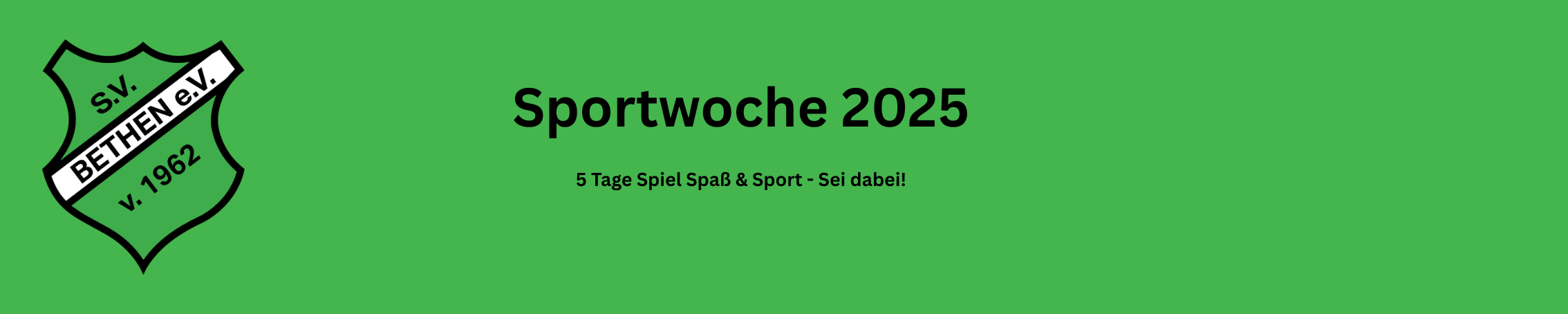 Wir freuen uns, dass Du unsere Webseite besuchst, und möchten Dir auf diesem Wege möglichst viele nützliche Informationen über unseren Verein, unseren Sport und all das, was dazu gehört, bereitstellen. Wir sind ein Sportverein, der sich mit guter Jugendarbeit und attraktiv spielenden Damen- und Herrenmannschaften im Fußball einen guten Namen erspielt hat. Aber auch andere Sportarten finden beim SV Bethen ein Zuhause!